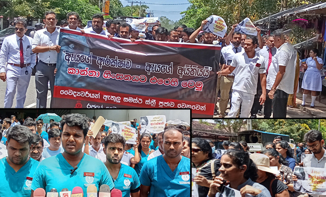 அநுராதபுரம் போதனா வைத்தியசாலைக்கு உரிய பாதுகாப்பு நடவடிக்கைகளை ஏற்பாடு செய்து தருமாறு கோரி மருத்துவர்கள், ஊழியர்களால் இந்த ஆர்ப்பாட்டம் முன்னெடுக்கப்பட்டுள்ளது.