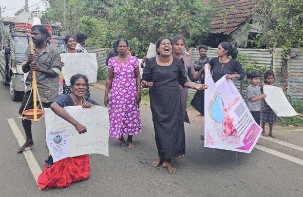 அதன் பின்னர் பதாகைகளை தாங்கியவாறு சவப்பெட்டியுடன் வந்த உறவுகள் வீதியில் இருந்து எமது பிள்ளைக்கு நீதி வேண்டும், பொலிஸாரின் அராஜகம் தொடர்கிறது" என கோஷமிட்டவாறு ஆர்ப்பாட்டத்தில் ஈடுபட்டனர்.