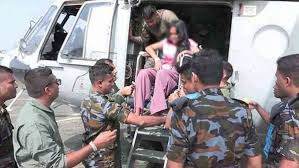 இலங்கை நிலவிவரும் சீரற்ற வானிலை காரணமாக வெள்ளத்தில் சிக்கித் தவிக்கும் பொதுமக்களை பெல்