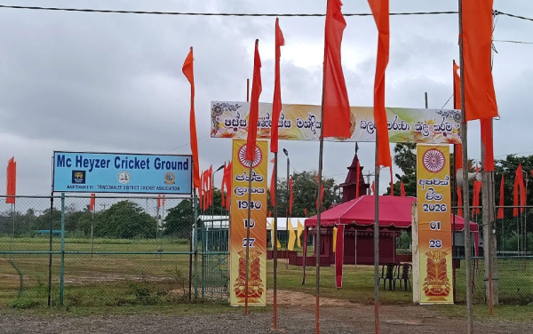 திருகோணமலை பொது மக்கள் அதிகளவில் பாவிக்கும் மக்ஹேய்சர் மைதானத்தில் திருகோணமலை பிக்கு ஒருவரின் தகனக் கிரியை இடம்பெறுவதற்கான ஏற்பாடுகள் முன்னெடுக்கப்படுவதாக சமூகவலைத்தளங்களில் விசனம் வெளியிடப்பட்டுள்ளது.