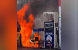 இதன் காரணமாக அங்கிருந்த எரிபொருள் நிரப்பும் இயந்திரம் ஒன்றின் ஒரு பகுதி முற்றாக எரிந்து கருகியது.